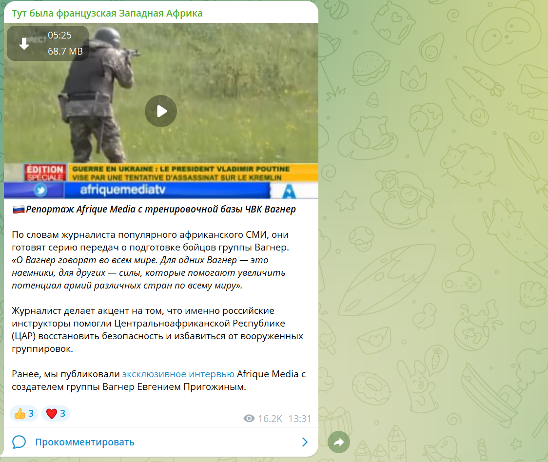 При этом продолжают появляться и новые каналы, например Африканское зазеркалье (30 августа 2023, 1,8 тысячи подписчиков), созданное выпускником МГИМО и членом Африканского клуба Никитой Паниным. Председатель Африканского клуба МГИМО Валерий Жучков в интервью для куреевского информационного агентства рекомендовал Панина как эксперта и заявлял, что «сейчас Россия и Китай вместе выступают против неоколониализма в Африке».