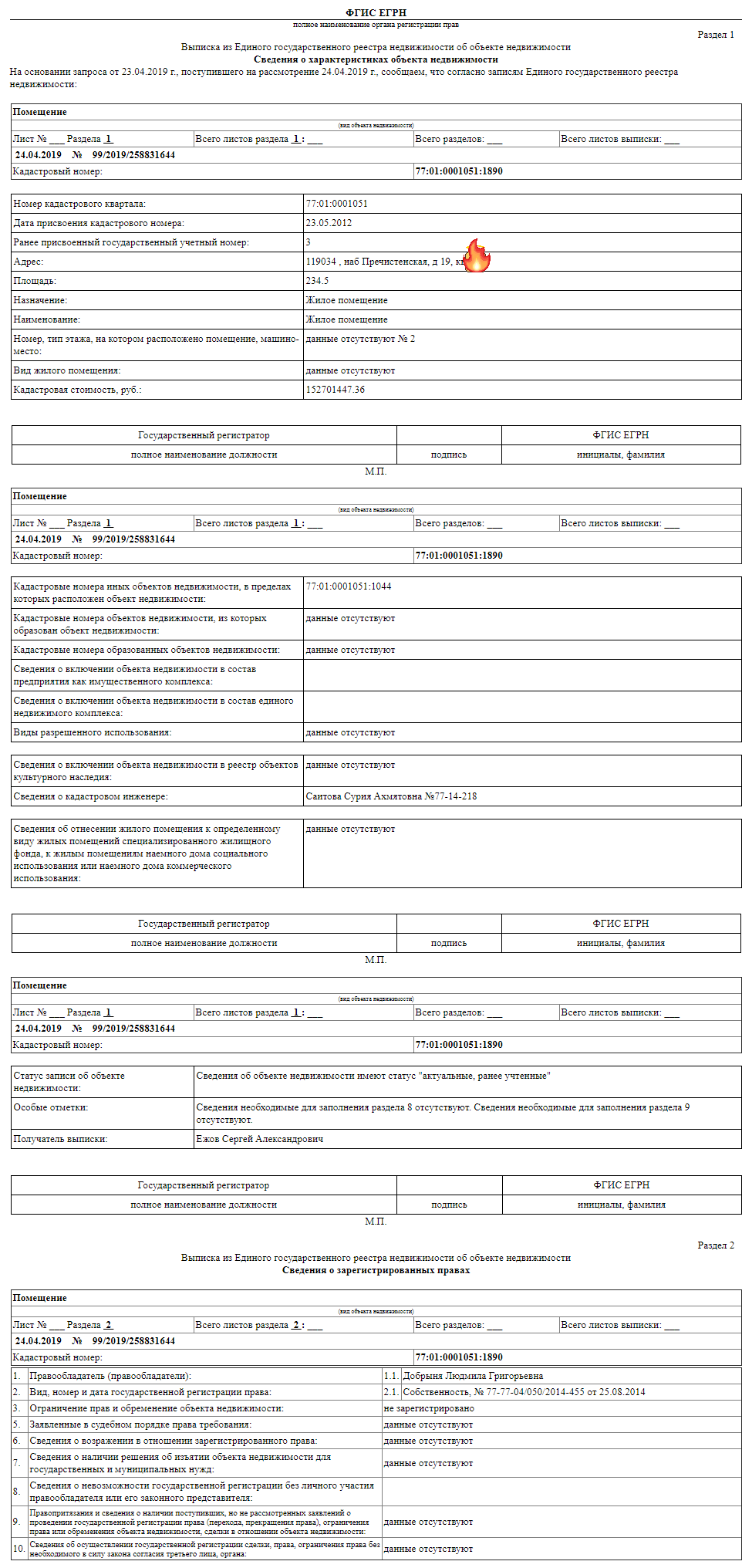 На тещу чиновника оформлено и другое имущество, сведения о пользовании которым в декларацию Аксеновых не вошли. Согласно выписке из Росреестра, на Добрыню оформлена квартира площадью 234 м², расположенная в ЖК Barkli Plaza на Пречистенской набережной в Москве. В этом же доме до ареста жил знаменитый полковник Дмитрий Захарченко, у которого нашли 8,5 млрд рублей наличными при обыске.