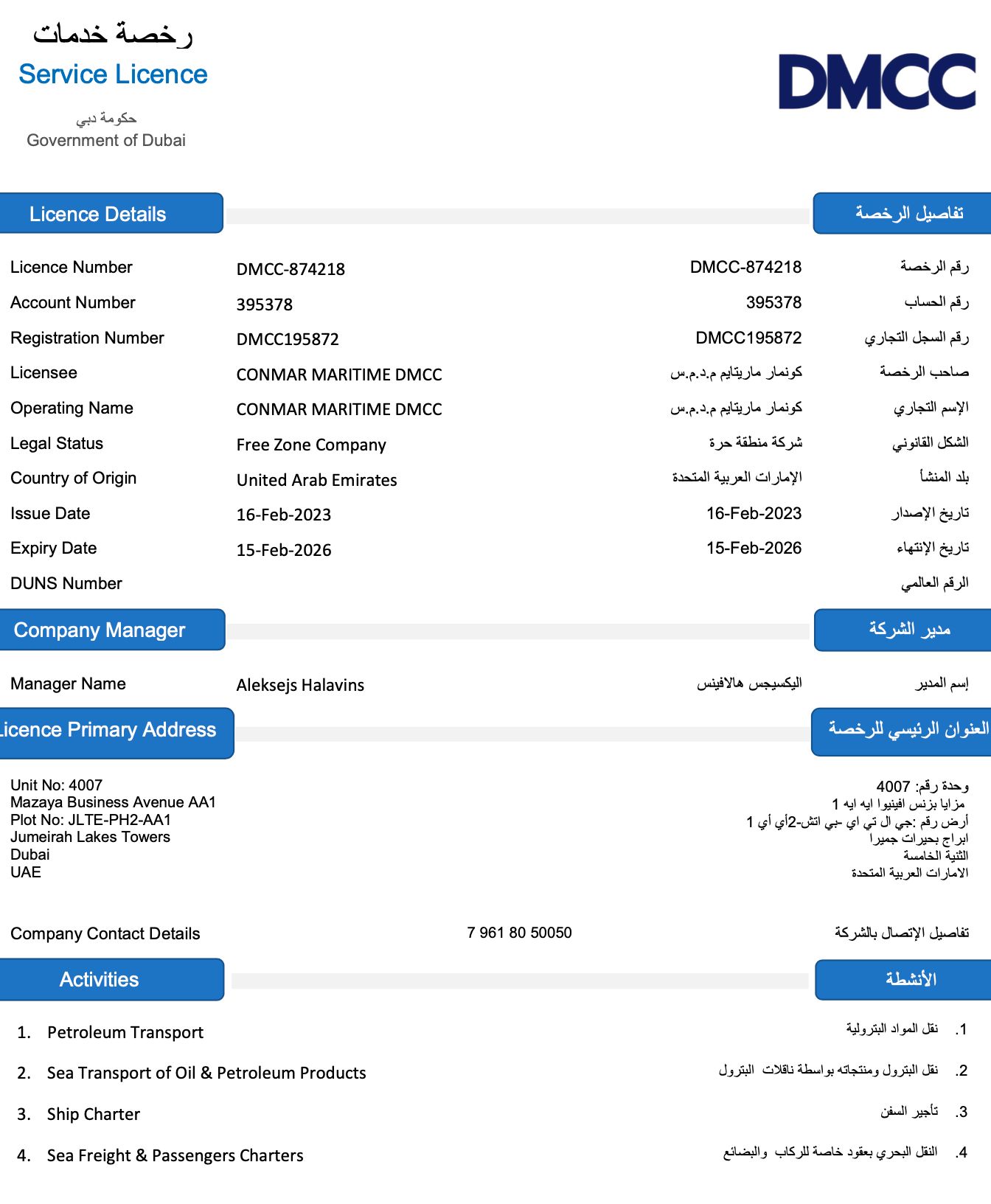 В своем аккаунте LinkedIn Алексей Халявин называет себя бенефициаром и генеральным директором компании Conrad Management Company. В распоряжении The Insider оказался ряд разрешений на проживание в ОАЭ, выданных по приглашению этой компании нескольким сотрудникам российского ФГУП ВО «Промсырьеимпорт», находящегося в ведении Минэнерго России и занимающегося в том числе морскими поставками нефти и нефтепродуктов. В вопросе нарушения санкций эта компания не новичок: еще до полномасштабного вторжения в Украину «Промсырьеимпорт» попадала под украинские санкции за поставки топлива в Крым, а в 2018 году — под санкции США как участник схемы, посредством которой Иран в обход американских санкций поставлял нефть Сирии.