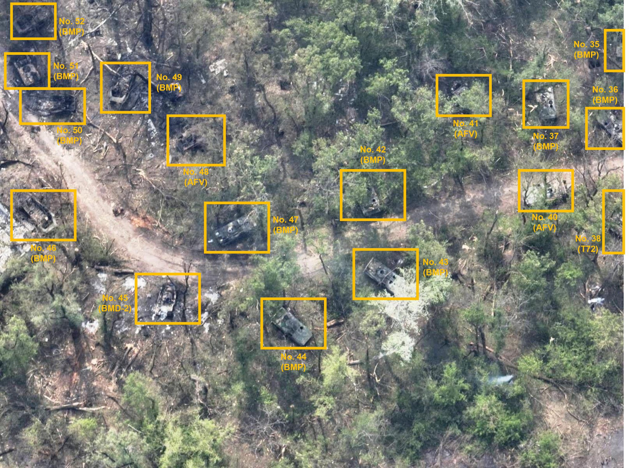 За четыре дня Россия потеряла или бросила 73 единицы военной техники в результате неудачной переправы через реку Северский Донец в районе Белогоровки. Это выяснил расследователь BlueSauron, занимающийся освещением военных конфликтов на основе открытых данных.