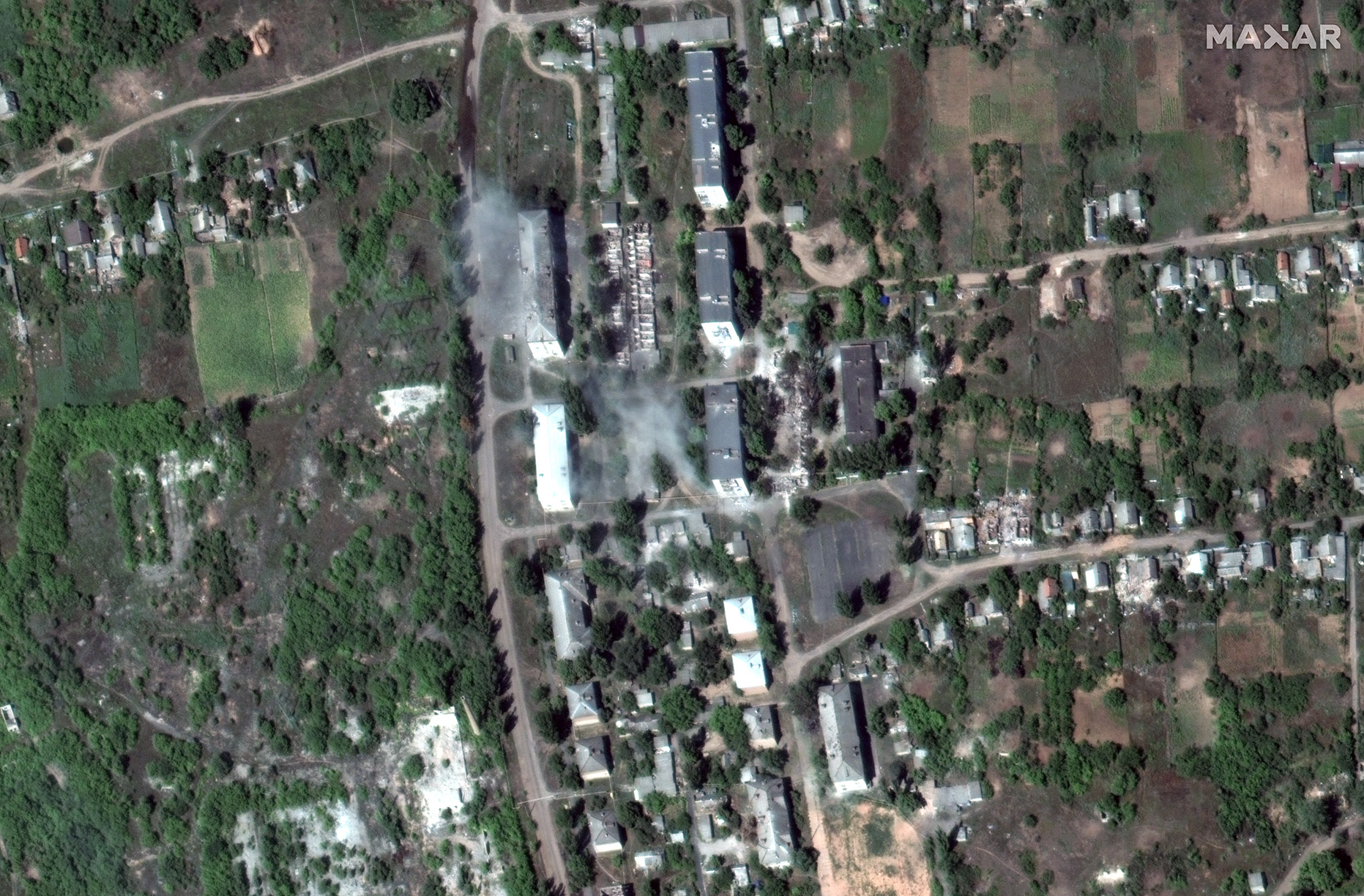 Проект Maxar Technologies опубликовал снимки, отражающие ситуацию в Соледаре до 1 августа 2022 года и после 10 января 2023 года. На последнем снимке — полностью разрушенные многоквартирные дома: