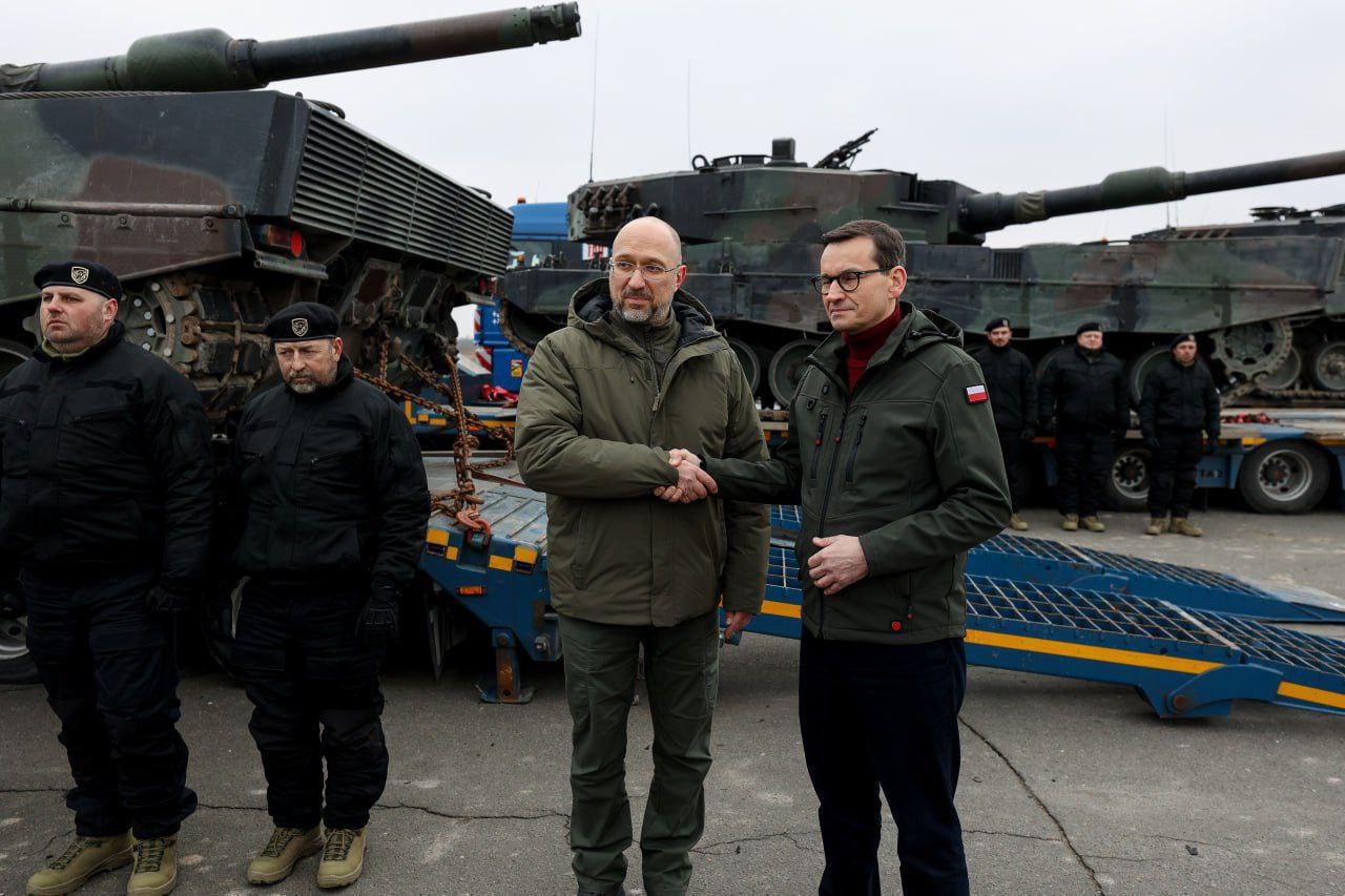 Украина получила первые танки. Предположительно на полигоне во Львовской области 24 февраля состоялась церемония передачи первых четырех танков Leopard 2A4 немецкого производства из состава вооруженных сил Польши. В церемонии, приуроченной к годовщине начала российского военного вторжения, принимали участие премьер-министры Польши Матеуш Моравецкий и Украины Денис Шмыгаль, а также министр обороны Украины Алексей Резников. Танки были доставлены из Польши на автомобильных трейлерах и в ходе церемонии переданы личному составу 4-й отдельной танковой бригады ВСУ.