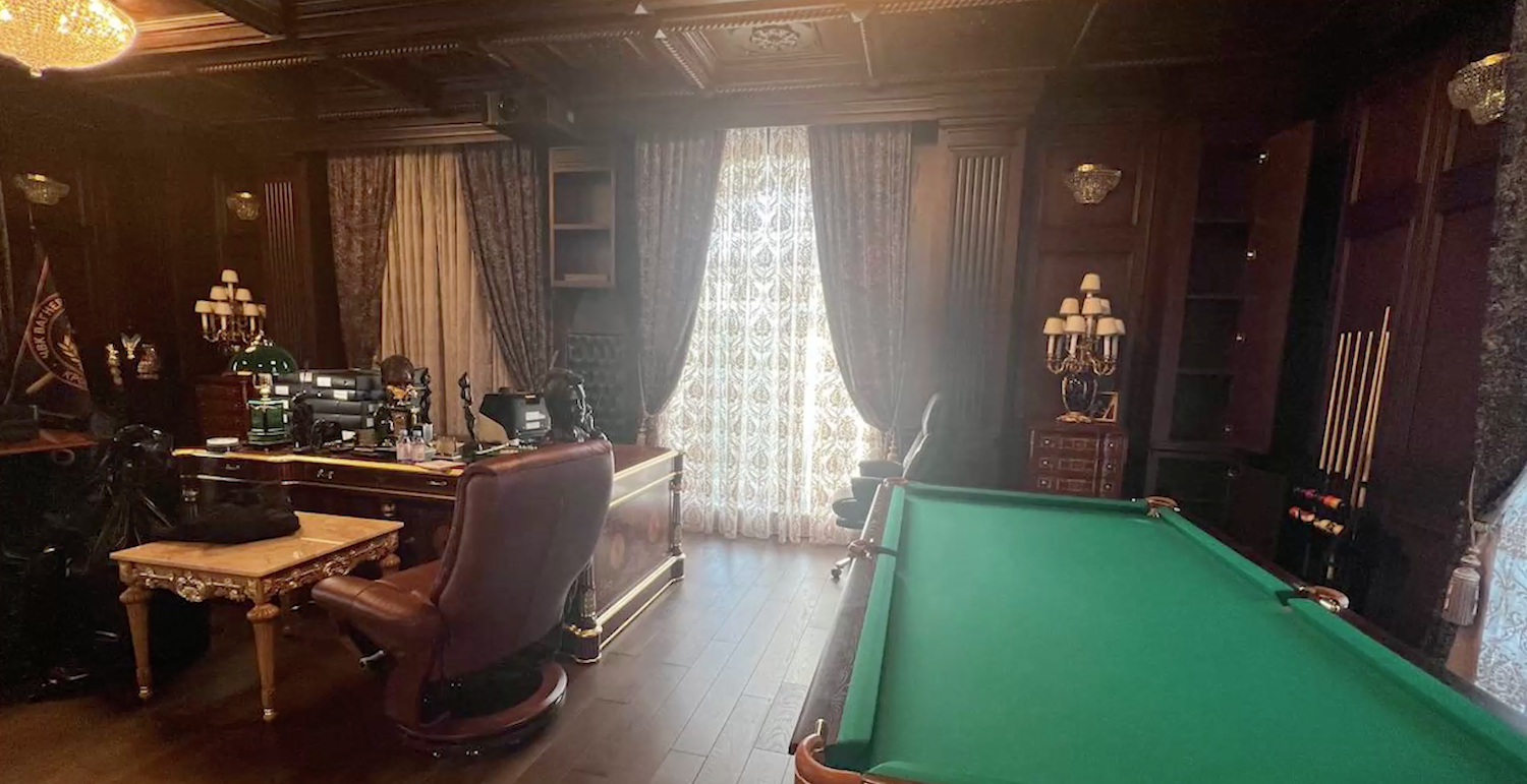 Также в доме нашлись парики, огромная кувалда с надписью «На случай важных переговоров», медицинский кабинет, а также пиджак с государственными наградами. На кителе видны: