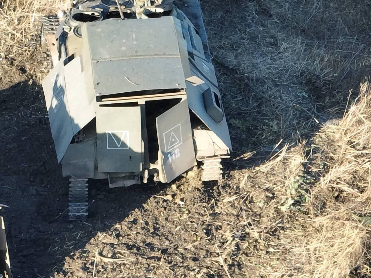 На снятых с разведывательного дрона кадрах можно увидеть модернизированные для перевозки пехоты советские гусеничные тягачи, которые были утрачены россиянами при подрыве на противотанковых минах в ходе недавних наступательных действий в районе Новомихайловки. Воронки от их детонации различимы позади машин на фото.