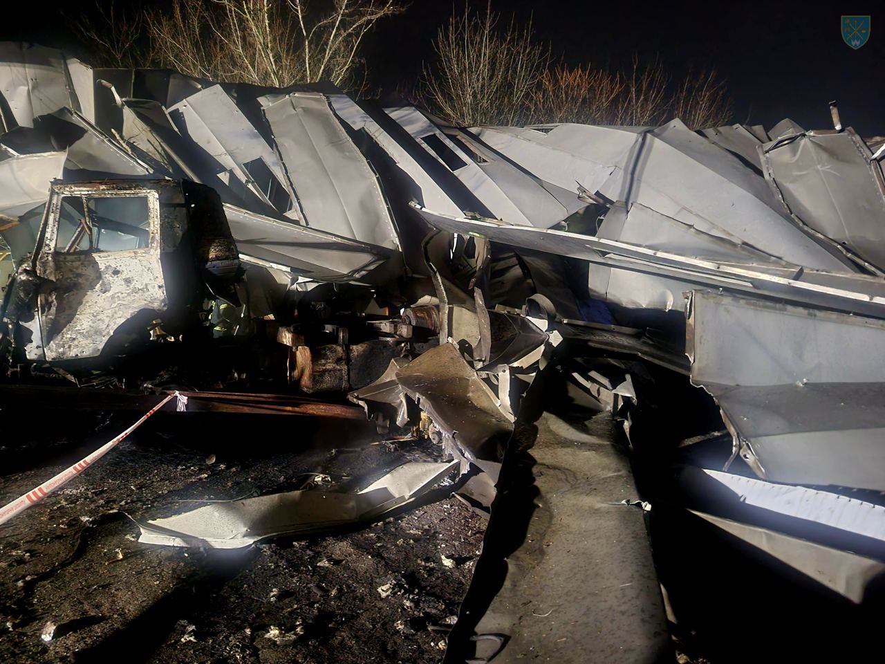 В Одесской области один из сбитых «Шахедов» упал на территории коммунального авторемонтного предприятия. Возникший пожар потушен, легко ранены два человека, повреждены 11 гражданских автомобилей. Обломки другого дрона-камикадзе повредили одно из портовых зданий.