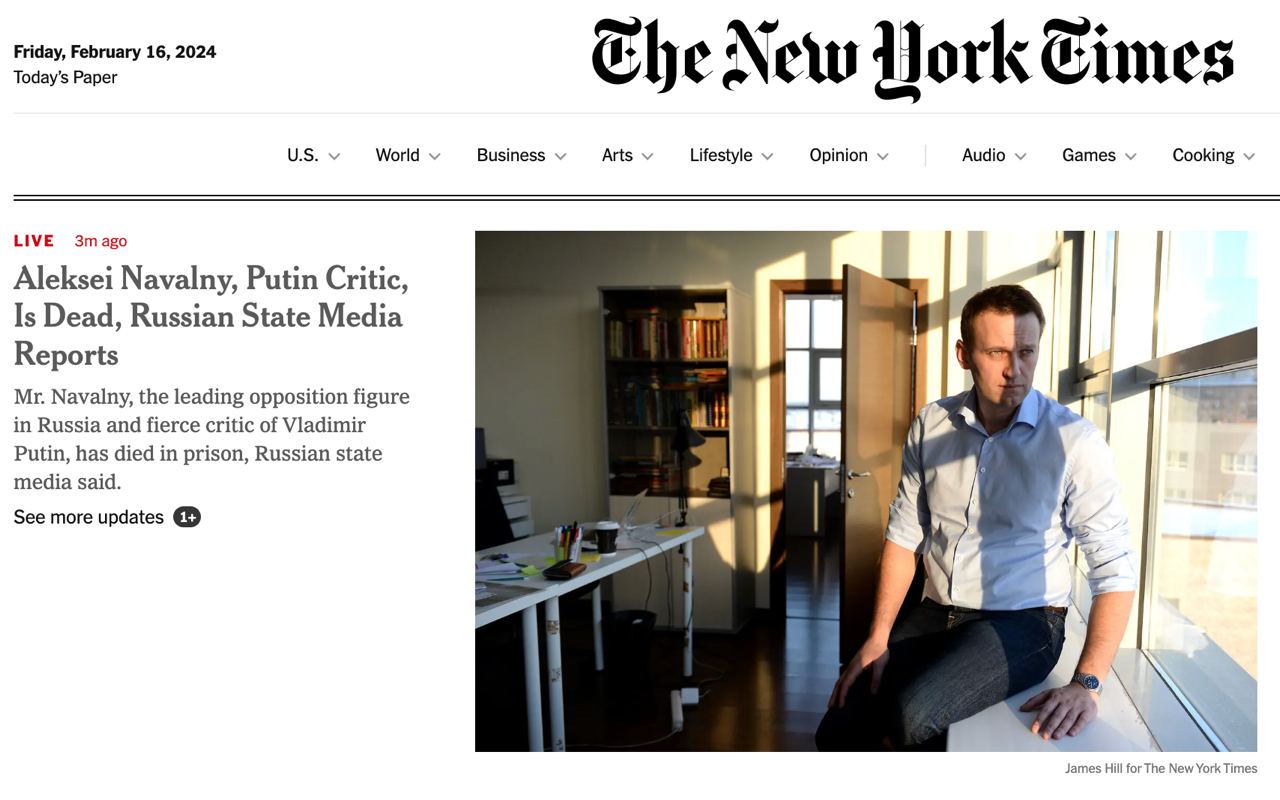 Управление ФСИН России по Ямало-Ненецкому автономному округу сообщает на своем сайте о смерти Алексея Навального.