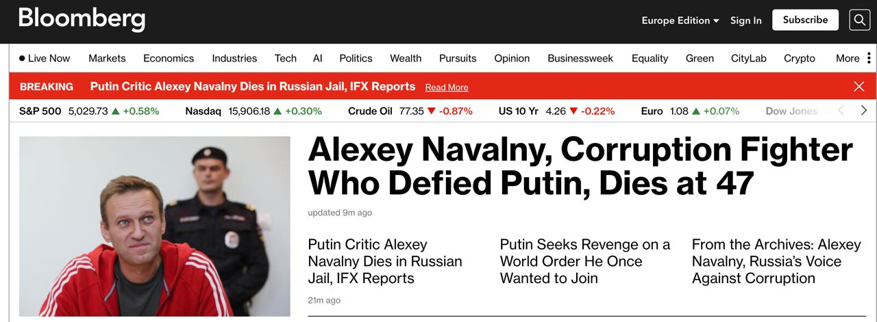 «Навальный был окончательно убит Путиным сегодня», - прокомментировал расследователь Христо Грозев.