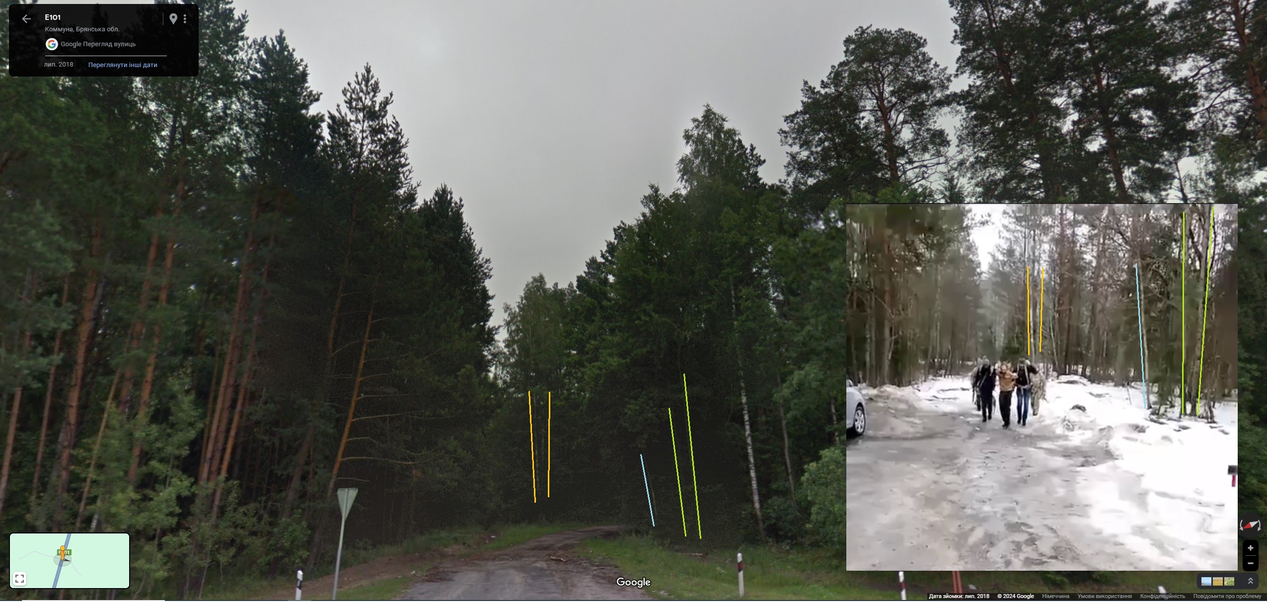 Видео снято недалеко от поселка Коммуна в Навлинском районе Брянской области, его геолоцировал один из участников сообщества GeoConfimed. Поселок находится рядом с деревней Хацунь, о которой сообщал Хинштейн, рассказывая про задержание.
