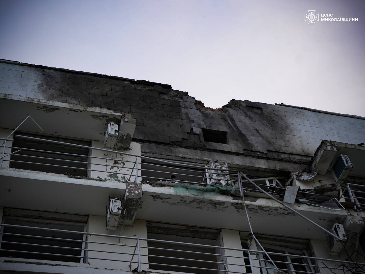 В результате ночной атаки в Николаеве получили повреждения объект теплогенерации, а также гостиница, которую только закончили восстанавливать после обстрела в 2022 году. При этом никто не пострадал.