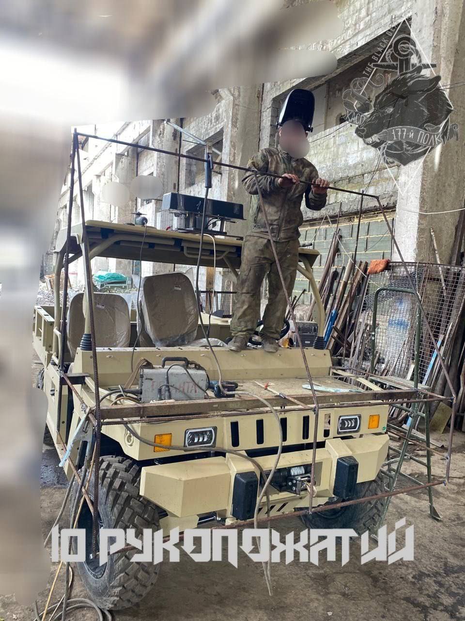 Тем временем российские военные, до которых не дошли новые БМП, ищут различные варианты защиты своей техники подручными средствами. Опубликованы фотографии процесса «омангаливания» китайского вездехода Desertcross.
