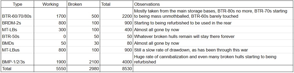Всего из 8530 единиц бронетехники на складах в боеготовом состоянии находятся 5550 единиц.