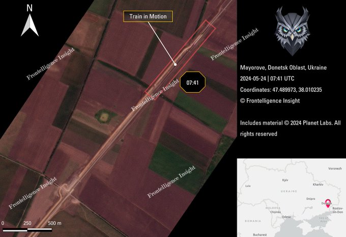 Как сообщает Tatarigami_UA, ссылаясь на оценку Frontelligence Insight, «в течение нескольких недель или дней» на оккупированных территориях Донецкой области заработает новая железнодорожная ветка между Бурным и Маловодным. Спутниковые снимки подтверждают ограниченное движение поездов на этом участке.