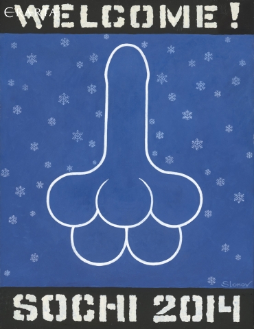 В 2014 году Марат Гельман, тогда еще директор Пермского государственного музея современного искусства, готовил выставку Василия Слонова «Welcome to Sochi». Серия работ затрагивала чувствительную историю с личным пиаром президента и спортвошингом, которым Олимпиада в Сочи и являлась.