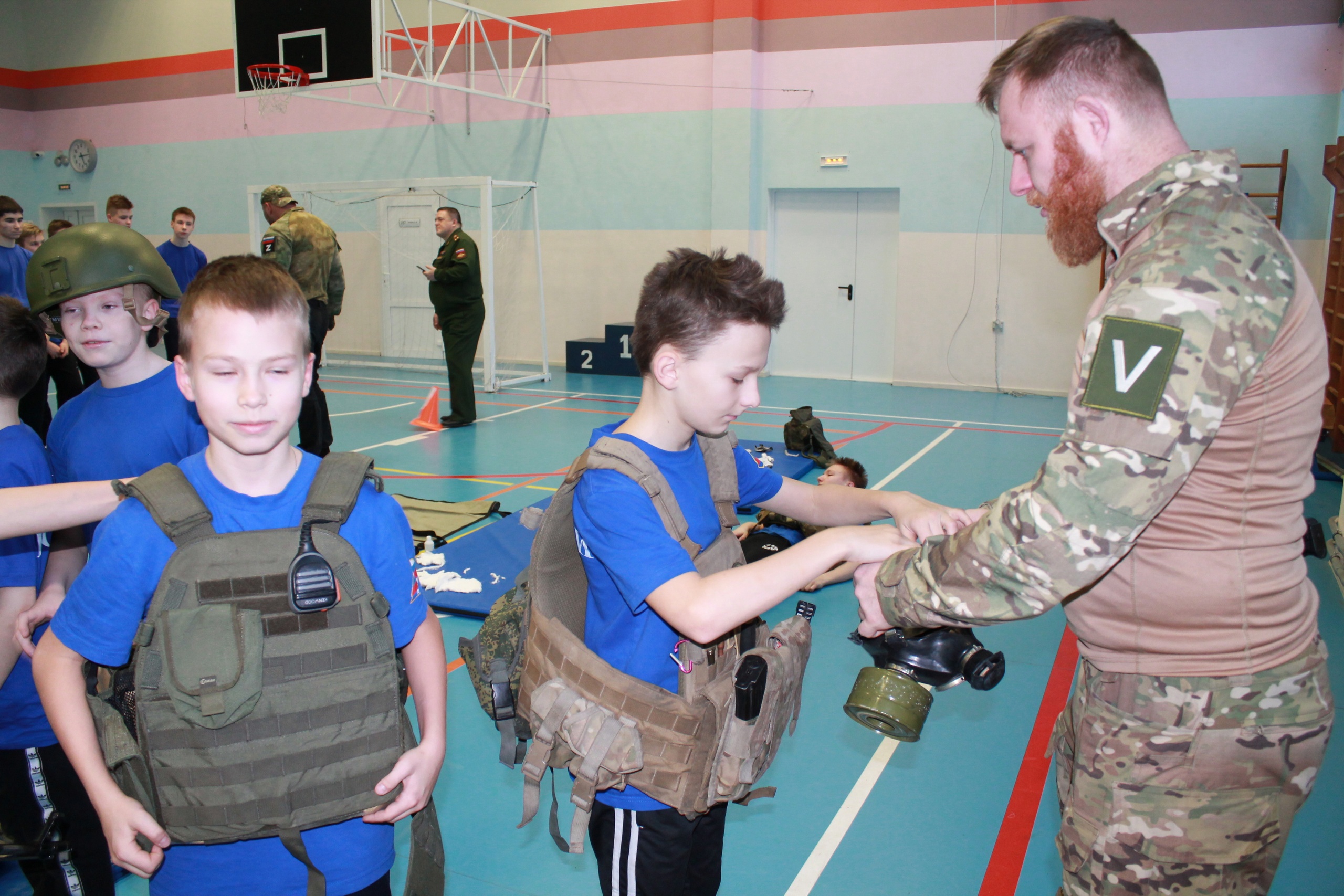 На занятиях «тренеры» одевают десятилетних детей в военную форму с нашивкой Z и учат пользоваться автоматом: